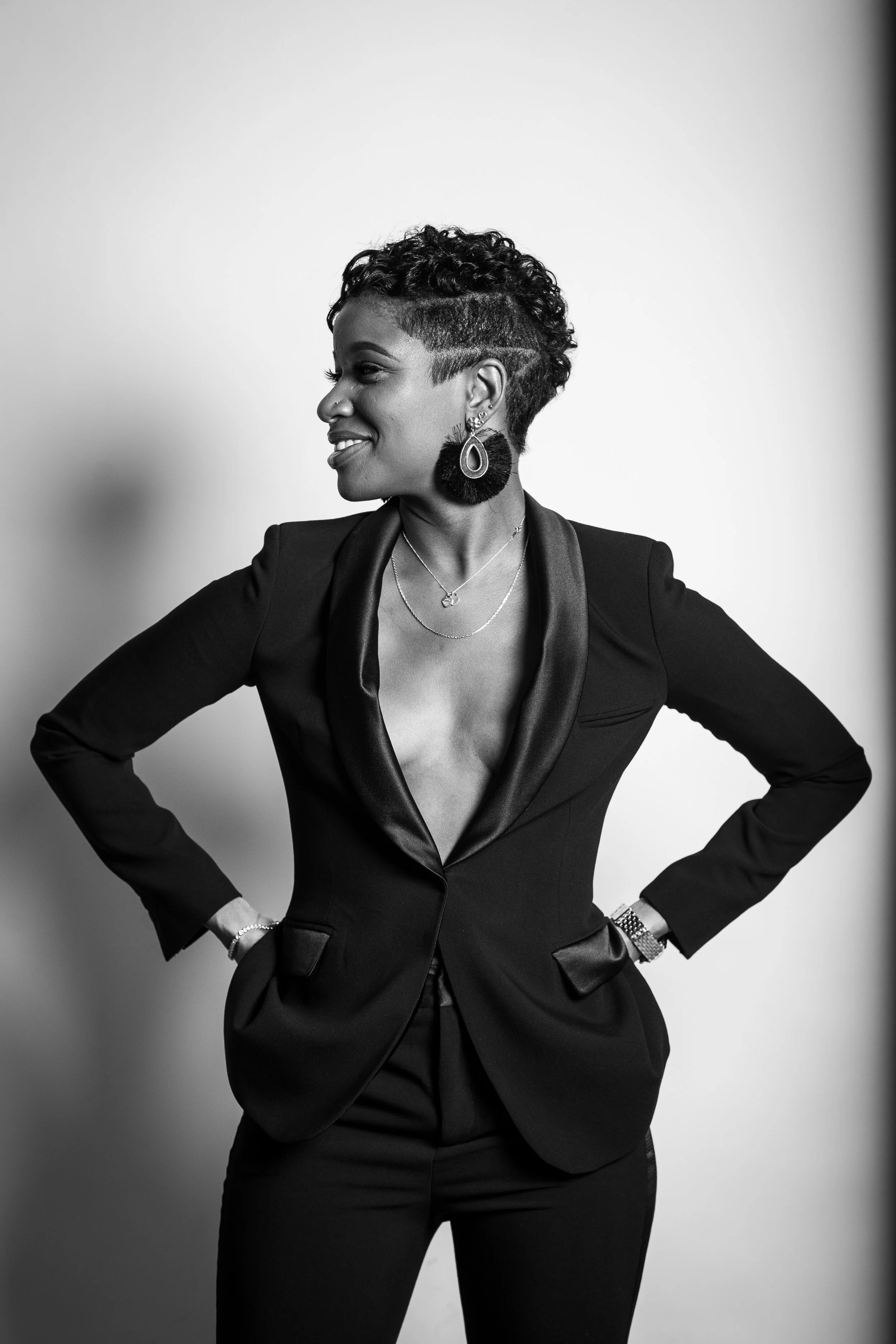 I wanted a nice sleek look because I knew the photos were going to be in black and white. In the event I did not like the black and white photos I wanted an outfit that looked good in color and/or in black and white.